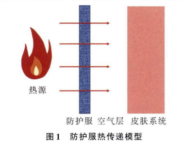 在人體-服裝-環(huán)境復(fù)雜傳熱中,化學(xué)防護服介于火源和人體之間,充當一種介質(zhì),其主要作用是阻止或減緩熱量向人體的傳遞,降低高溫環(huán)境對人體的威脅,故防護服的熱防護性能是評估熱防護服必備的指標。因此,研究熱防護服在人體-服裝-環(huán)境之間的熱傳遞,對評估以及改進防護服的熱防護性能具有重要意義。