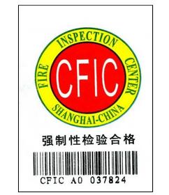3、消防員滅火防護服作為強制檢驗產(chǎn)品,應(yīng)在產(chǎn)品上加施強檢標(biāo)志,應(yīng)在每件消防員滅火防護服舒適層標(biāo)簽旁縫制一個強檢標(biāo)志,分體式的尚需在防護褲子舒適層褲袋處縫制一個相同的標(biāo)志,如圖所示,尺寸應(yīng)為60mm×90mm。同時,將一件新的消防員滅火防護服,平鋪在桌面上,打開拉鏈,在防護服的內(nèi)側(cè)即舒適層上查看是否有國家消防裝備質(zhì)量監(jiān)督檢驗中心的批檢標(biāo)志,并記錄下批檢號,從檢驗中心網(wǎng)站上查詢該生產(chǎn)企業(yè)的批檢合格號碼的范圍,確認其真實性。