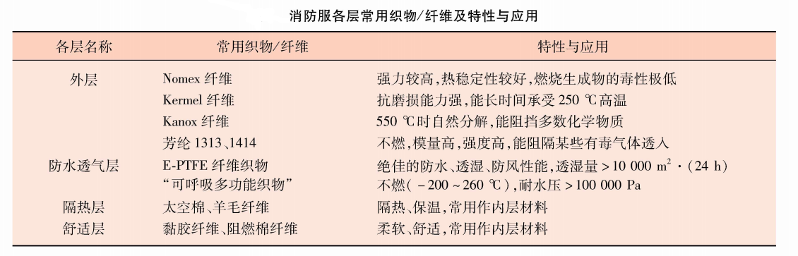 消防服結(jié)構(gòu)及常用材質(zhì)解析