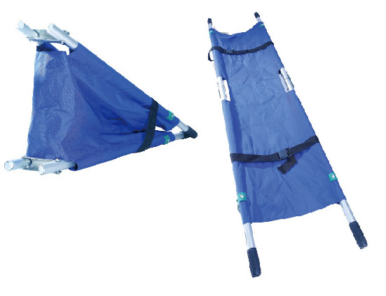 ·折疊式擔架由金屬框架和牛津革擔架面制成,重量輕、體積小,使用方便安全,用于事故搶險救援現(xiàn)場運送受傷人員。