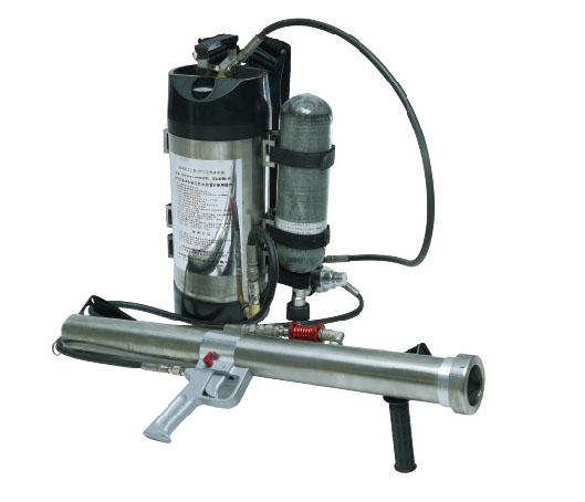 ·噴射器(水槍)、貯水桶、高壓氣瓶、減壓器、背板、背帶、高壓管路、快速接頭組成。